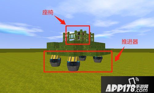 来做一辆简易的载具测试一下,胖叔用喜欢的竹子方块制作了一辆载具,并在载具的后面装上了三个推进器: