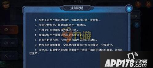 关于材料获取,有很多种方式,在野外探索、完成各种任务都有可能获得一定的资源、材料,这些材料将会储存在仓库中;在工坊里,我们也可以分配已有的小精灵进行制定材料的生产,科生产的材料包括糙木、粗铁、糙石、金币、精木、精石、金币等等;此外,在野外探索中占领的矿点也将持续生产出对应的材料。