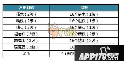 为了让懒人也有春天,在下抛砖引玉,整理了一个材料生产与消耗对照表,给大家参考~