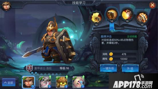 英雄的技能通过在技能导师处花费技能卷轴学习获得,同时我们也可以在这里通过花费金币进行英雄的技能升级。