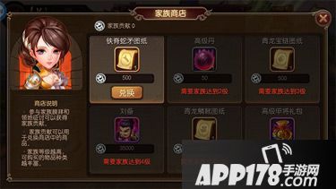 逆袭土豪哪家强?来家族就对了!每天先去膜拜一下家族小伙伴,涨经验涨贡献涨姿势!家族商店还可以分分钟兑换甲级精魂,名驹精魄,万卷精魄!发家致富,赢取白富美,走上人生巅峰,就是这么简单! 而下方的限时商店则更为神秘,需要族长或者长老点击开始购买开启商店后,每日凌晨三点商店会刷新,物品随机,低级高级的都有,甲级装备,图纸,各种材料都有哦。家族玩法会不断更新中,所以大家拭目以待!
