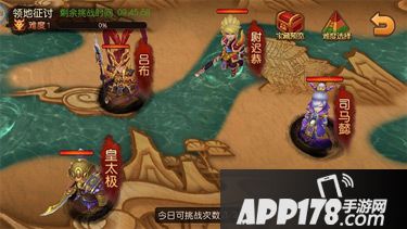 是英雄,怎么能不去南征北讨平定山河!和你的兄弟一起去领地征讨吧,感受过五关斩六将的的勇猛无敌和英雄之姿!每天都可以免费参加三次领地征讨哦!击败四位名将就有机会获得酷酷的宝箱哦!大家可千万不要小看了领地征讨,这可是需要智勇双全的技能的哟!司马懿,皇太极,吕布,尉迟恭四位名将的技能都不同,挑战时要看看清楚其技能说明,然后把握技能释放的时机,抓住空隙打断,分分钟虐翻对手不是梦哦!