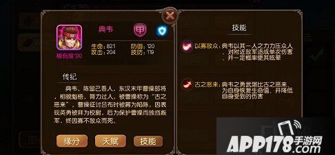 首先我们从平民阵容中防御型英雄开始,前期拥有一个强力的防御型英雄很重要,在这里给大家推荐典韦,虽然他的稀有度只有120,但是千万不要小看他,对于平民玩家来说,典韦算是最好的防御型英雄选择了。