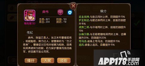 司马法乙级兵书宝物也很好弄,除了追风紫马有点难度外,其他都不是问题。这样典韦的缘分差不都都可以激活了,而且全部是加技防,防御和血量的。最后在通过神秘商店,宝藏探索给典韦装备上一套装,有紫装就更好,精炼,强化好,保证你的典韦在前面稳如泰山。