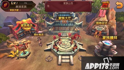家族拥有家族商店,限时商店,家族大厅,领地征讨,家族膜拜五个选项。首先家族大厅不用多说大家明白是查看家族所有成员以及家族日志的地方,同时族长可以在这里设置其他成员的职位,批准其他申请本族的英雄。如果想表达对新加入成员的欢迎除了言语以外,还可以对其点赞哦,而且自身可以获得2点精力哦。回赞的话亦可以获得1点精力。1级的家族初始能容纳30人,随后会随着家族等级的升高而提升容纳人数。族长有公告想告知大家都可以写入群公告内,将会在家族大厅显示。家族职位分为族长,长老,精英,普通成员四种,其中长老和族长拥有管理权限。