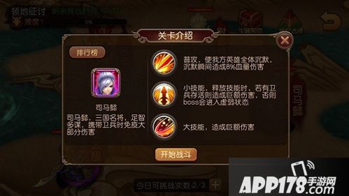 值得提醒大家的是司马懿,皇太极,吕布,尉迟恭四位名将的技能都不同,挑战时请仔细看清楚其技能说明后在进去挑战,然后把我技能释放的时机,打断技不要轻易释放,注意观察所挑战的名将其技能释放的时机,抓住空隙打断,这样才能打出高额伤害,获得更多的贡献,不然三次挑战次数就白白浪费了哦。
