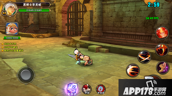 战斗中也对应着四个技能位置,最右下角是普通攻击的按钮,长按可以持续普通攻击。四个技能从下到上依次对应四个技能,每释放一个技能会有一个对应的CD,技能四的伤害最高,因此CD时间也最长。所以在非自动战斗的情况下,看到大招蓄满了就可以释放掉了。在非自动战斗时,有一个小窍门就是快速地跑到敌人的攻击区域外并在敌人背后释放一个大招,基本都能打掉敌人一大半的血槽哦。注意:有些关卡设定的得星条件是使用某个技能杀死几个敌人,要注意技能的名字手动操作,在敌人快死的时候用那个技能一击必杀。自动战斗是技能准备就绪了就会释放,可能不会立刻杀死敌人,所以可能会拿不到星星。