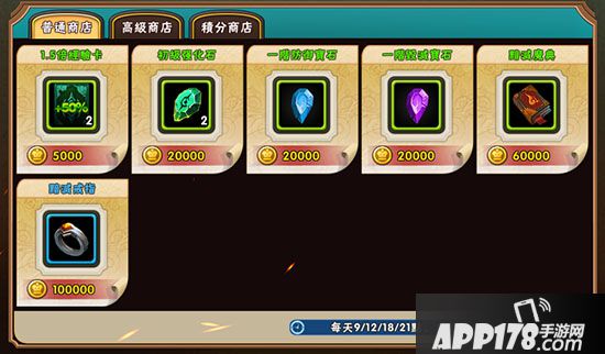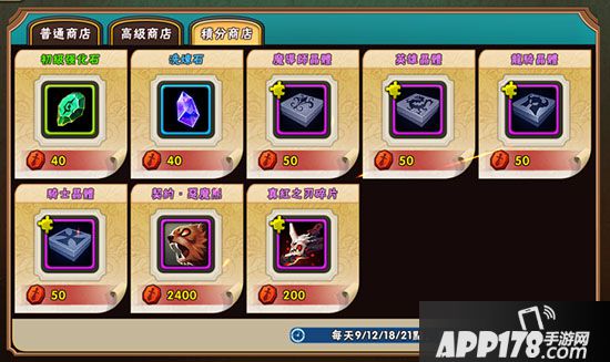 商店分为普通与高级两种,而它们的区别嘛,除了所贩卖的商品完全不同外,普通商店内花费的游戏内的金币,而在高级商店内所消费的则是钻石,所以嘛,在高级商店内贩卖的商品自然要高大上不少!除了高级的强化宝石之外,有时居然还会刷出神器碎片,时装宝箱和神秘的契约卡哦!看来想迅速大幅提升战力,高级商店真不愧是捷径之一。