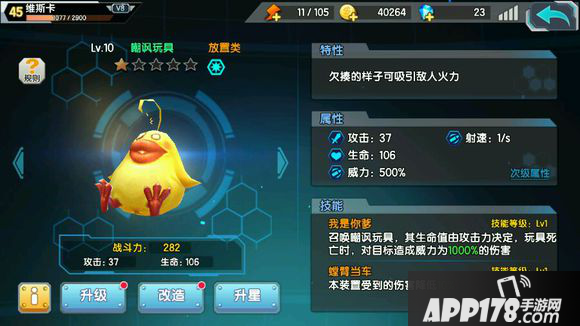 一发过热,吸引火力我的嘲讽玩具能吸收4000左右的伤害。适合配合学姐老师开技能进行安逸输出。