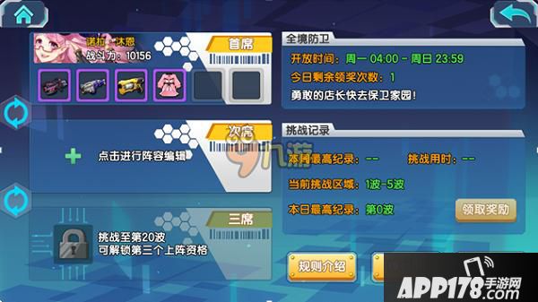 它的玩法是属于限时生存关卡,通关5-12后解锁,各位店长需要在固定的战斗区域内抵御一波又一波的敌人。每完成5波敌人挑战后会进行关卡切换,切换是自动Loading进行不需要玩家退出后选择。关卡切换时当前上阵的少女血量保持不变,不会为其回满。