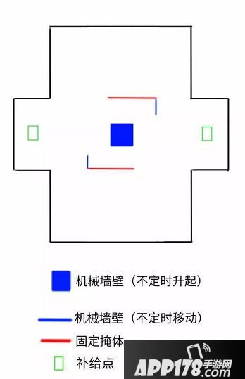 最老的一张图,没有太特殊的,中间的立柱和挡板会不定时升起和移动,有据可考的只有第一次时4:11挡板开始移动,3:30时立柱第一次升起。3:40秒时会出现第一只飞行机器人,血不多,击杀者可获得一次使用大招的机会。这张图拼的就是硬实力,一搬情况战局甚至都不会拖到飞行机器人出现。