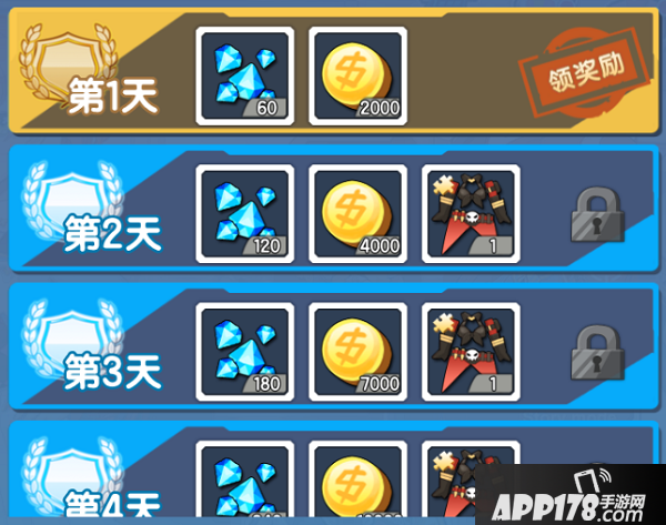 第3天:光晶钻石X180、金币X7000、暴走牛仔零件X1