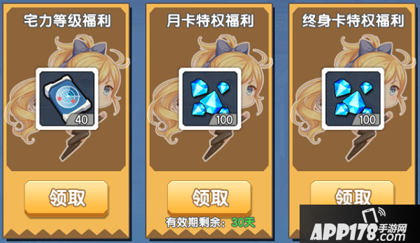 永久卡福利:每日领取100钻石