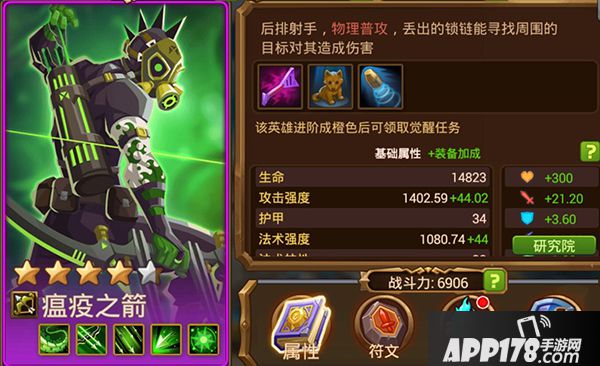 《MR魔法英雄》中,能够控场的英雄一般都是非常强力,瘟疫之箭不仅自身的伤害极高,且恶魔锁链的的禁锢对方能力更是让其有很强的可塑性,并且是很少几个在后期可以觉醒再度提升自身能力的角色,如果入手,尽管练起来。
