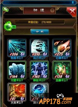 打怪可获得神通经验,在神通界面可将神通经验分配给神通,当满足条件时则神通升级。