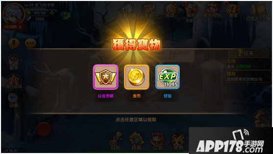 怎么样,是不是轻松易上手?以后的升级就靠他啦!诶,除了大量的经验奖励外,还有公会贡献和金币奖励哦~
