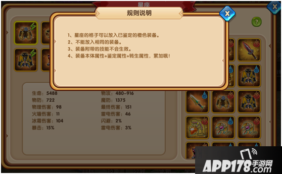 玩家可以把多余的装备放到星座中给自己增加属性喔!