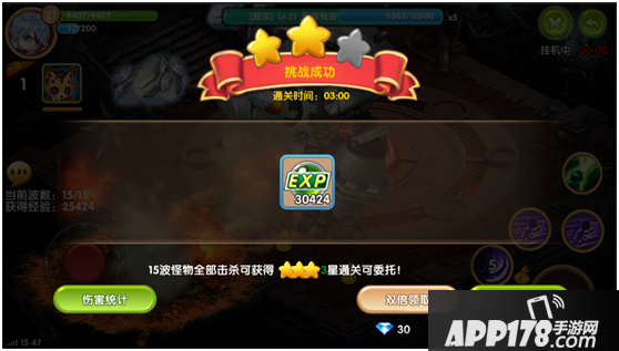 小编选择了经验副本进去体验了一把,虽然只有2星评价,不过好多经验呀,升级杠杠的。 只怪小编能力有限,没有好好的去提升战力,小伙伴们可别学小编噢,相信你们一定玩的比小编强的。