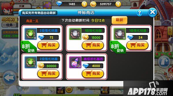 而神秘商店的刷新时间将在每天的12点、18点以及21点。神秘商店会随机刷出各种道具,而且有的道具有极大的折扣,是一个低价买入资源的好地方。
