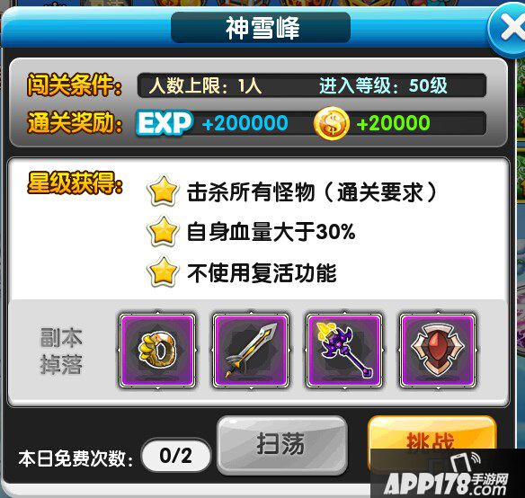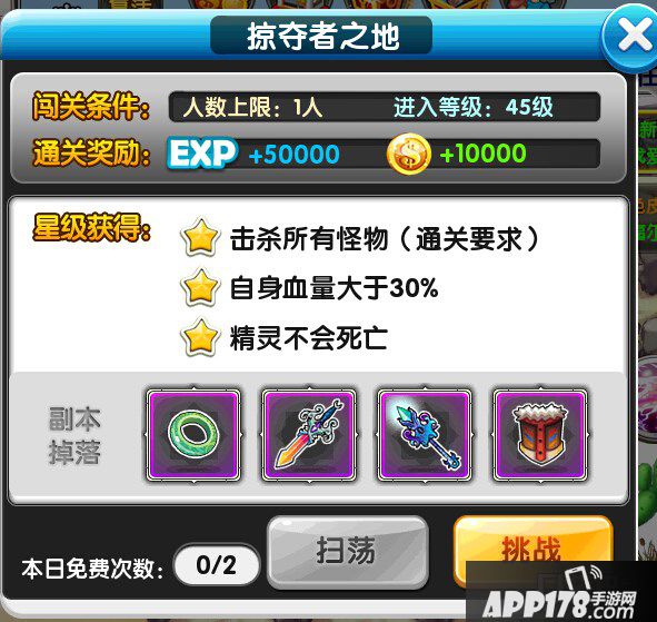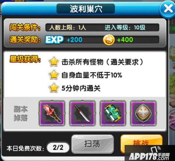 以上就是APP178手游小编为您带来的《冒险王2》野外副本进入等级 。更多精彩内容请继续关注APP178手游冒险王2专区。