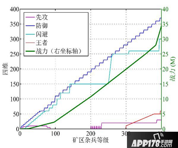 图1.矿区杂兵等级1-400的战力、四维变化