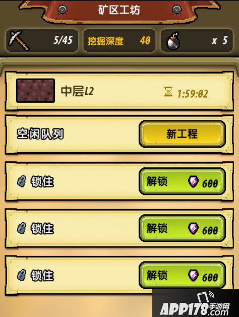 利用工坊挂机挖矿,建议前期挂在浅层和中层,挂一些前期需要的材料,而后期可挂到深层,获得一些后期发展所需要的材料。