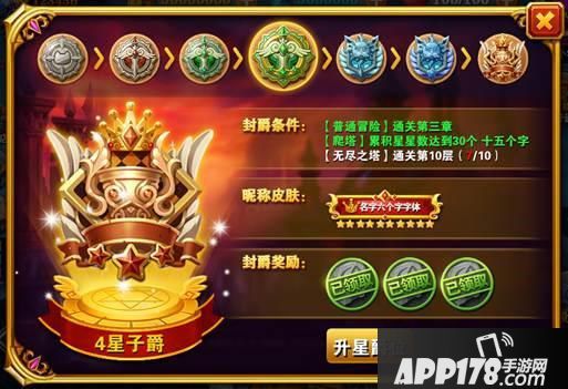 2)n级爵位达成后方可激活n+1级爵位,不可跳跃式激活