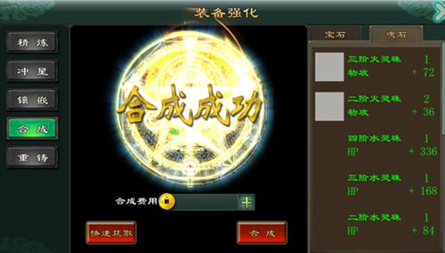 法宝还有一个逆天属性的加成一一魂魄,各个法宝之间魂魄属性不叠加,也就是说虽然每个法宝都有五个魂魄槽,但是只需要选择要装备的法宝进行镶嵌,法宝有五个魂魄槽,每种属性的灵珠只能镶嵌一次,可以镶嵌的灵珠有火灵珠(物理攻击),雷灵珠(魔法攻击),木灵珠(魔法防御),土灵珠(物理防御),水灵珠(血量),五个相同属性相同等级的灵珠可以通过合成系统合成高一级的灵珠(和宝石升级条件相同)。