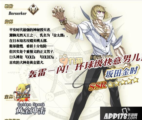 很多人问金时好在哪里~怎么说呢? 我的观点是这样的,金时强就强在 会说话且有趣的狂阶(B叔嚎叫简直精神污染),狂气,五星巴萨卡,自充能,不残疾的NP率,宝具高伤无视防御还带眩晕