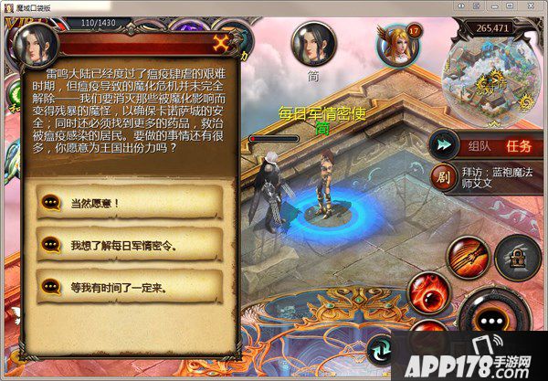 魔域口袋版日常任务 每日军情任务解析。在局势紧张的时期,王国军情处每天都要处理大量的军情密令。为了减轻军队的压力,每日军情密使简来到了卡诺萨城(266,470),特招募冒险者们前来协助完成军情密令委托。