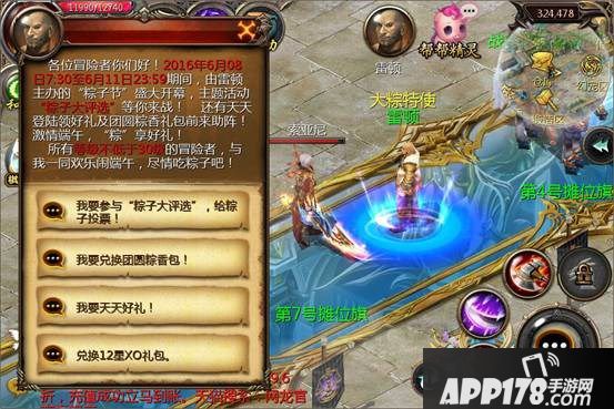 3、活动期间,冒险者们前往七大片区及5个星级片区斩杀魔怪即有几率获得水果、蛋黄或鲜肉口味的粽子,所缴获的粽子可用于参加【活动2】和【活动3】。