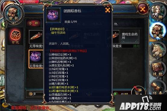 使用蛋黄粽子可获得1枚圣兽魔晶;