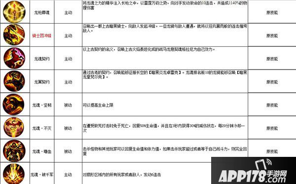 在《魔域小编版》中龙骑士作为五大职业的集大成者,不但血量上限高、输出连击恐怖,在装备、战宠养成上也极为快速,特有的“龙魂”系统使得龙骑士在战力提升上效果斐然。如此霸气的职业自然少不了技能,接下来小编就为各位汇总一下魔域小编版龙骑士的技能及效果!