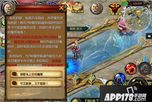 活动期间,每日20:10-20:40,等级达到35级且已加入家族的神选者可至首席封魔师洛伊处领取封魔匣,帮助他封印魔怪。