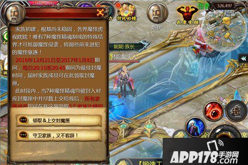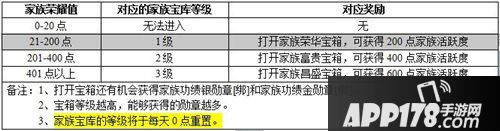 活动期间,每个家族在每日8:00-20:45,都可以使用家族荣耀权杖[绑]或魔石来提升家族荣耀值以升级家族宝库。