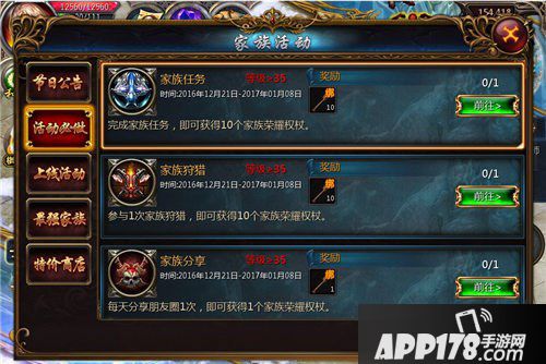 活动期间,每日还可参与家族活跃系列活动,完成这些活动都可以获得家族荣耀权杖[绑]哦。