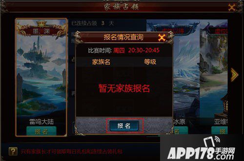 ③连续占领领地达7天、14天、21天、28天的家族,其家族成员们可领取“领地连庄经验”,即丰厚的经验奖励。