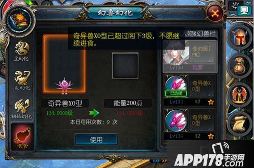 •喂食前,幻兽的等级不能高过主人 3 级