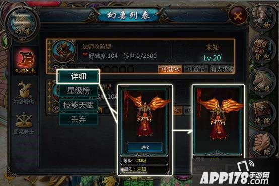 幻兽到达20级时,就可以进行第一次进化了,你的幻兽界面中会出现一个进化确认框。