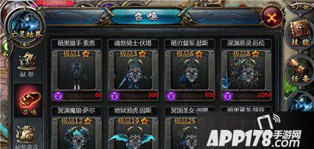 有了献祭点,那么就可以召唤亡灵生物了,但是,不是说你有献祭点就可以召唤你想要的亡灵生物的,你还需要和他们签订契约,才可以召唤他们。亡灵生物共有八种,星级从低到高,可召唤从1星到30星不等的亡灵生物,除了需要消耗必要的献祭点外,还需要达成:结界等级、角色等级、消耗对应阶层的死灵契约书或献祭点等方可成功缔约进行召唤。具体如下:
