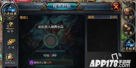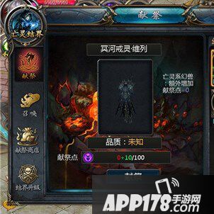 亡灵结界有献祭、召唤、结界升级三种操作,另外有一个进度条显示当前的献祭点以及献祭点的上限。