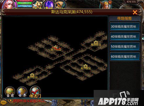 在深渊的刷怪方式与火山、迷宫并无太大区别,在经验翻倍的情况下,等XP后飞随机点点点~~另外,在深渊中,也分为了30、40、50、60级四个不同等级的精英怪营地,妈妈再也不用担心我越级打怪挂掉了!