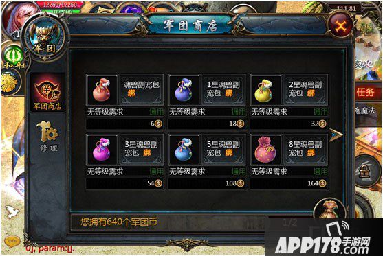 1、拥有魂属性特殊原生宠的职业者,可在卡诺萨城军团服务商店兹吉买处使用军团币购买魂兽副宠包。