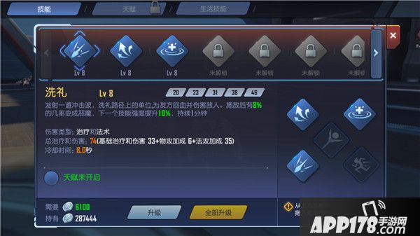 每个英雄拥有七个基础技能和一个大招,大招怒气满释放,每个技能都有对应的五种天赋,天赋可改变技能的伤害、范围等,具体技能见角色介绍。