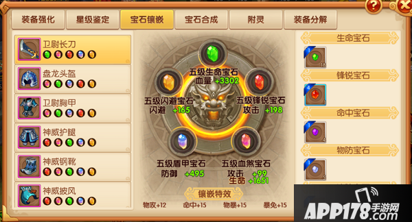 每一件装备同种宝石仅可镶嵌一件,总共有5个镶嵌位。