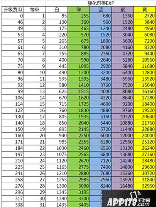论坛ID为“谙曾旧景风”的玩家贡献了武器升级与经验转化的对比表格。好想问一句,大神你是怎么弄到的,凭手算吗......