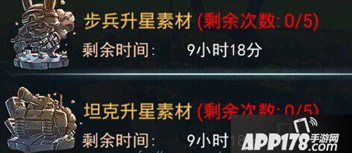 因为兵种限制,所以有多余的坦克步兵不要拿去喂了留着打材料本,基本三天就可以把坦克升到三星。