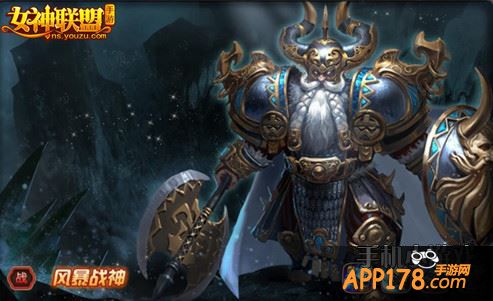 在女神大陆的另一端,富饶的土地被魔王占领成为殖民地之一,矮人族们沦为了恶魔们的奴隶,一有懈怠便惨招鞭刑或杀戮。为了给死去的族人和子嗣复仇,在向恶魔进贡之夜,一位英勇的老者溜进了魔窟,身穿战甲手持巨斧冲向恶魔,一路击杀众多恶魔。但魔窟魔多势众,正当他被恶魔们包围陷入困境之际,老者向女神发出了最内心的祈祷,神界的女神们感应到了老者的勇气,立即赐予其战神之力。战神之力配合他那土属性的身体,使他在狂风暴雨中也能稳如泰山,瞬间逆袭,横扫千军,从此“风暴战神 ”诞生!