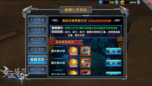 在本次删档测试当中,9377《女王号令》为进入赛亚大陆的勇士们准备了众多福利活动。定时钻石奖励发放、刷怪掉充值卡、冲级送金币、强化送宝石......海量钻石金币、各种稀有道具任性送送送!让勇士们在赛亚大陆征战之路上,变得更加“壕”气万丈!