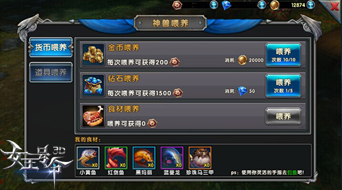 公会神兽爱吃小黄鱼!除了消耗金币、钻石或者道具进行喂养的方式之外,《女王号令》之中的“公会神兽”还可以通过食材喂养的方式来进行奉养。因此勇士们可以通过“公会钓鱼”玩法来获得小黄鱼、红剑鱼、黑玛丽、蓝曼龙、珍珠马三甲,用以喂养神兽,同样能够获得公会币的奖励。